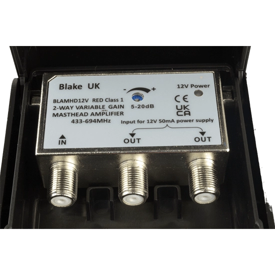 RED Class 1, Blake 2-Way Variable Gain 5-20dB Masthead Amplifier (470-694MHz) & Power Supply Kit