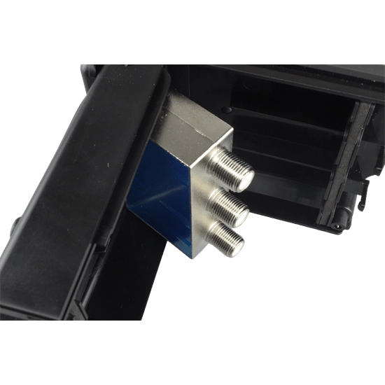 The amplifier’s thoughtfully engineered design allows for convenient access. The case opens to a full 90 degrees, providing easy access to the F connectors, while the shielded amplifier casing swings out to 45 degrees. The casing includes an LED indicator to confirm power reception.