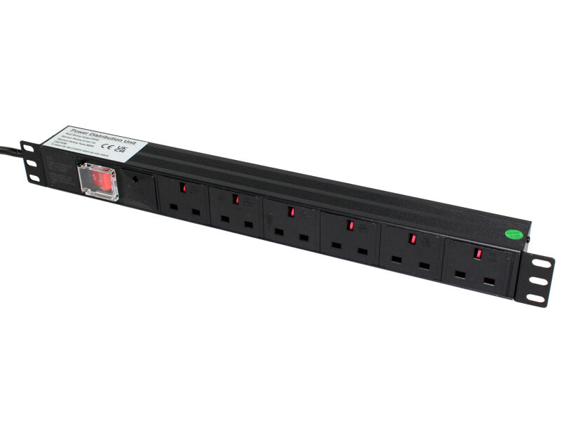1U 19″ 6-way switched socket PDU with surge protection for Clear Flow wall mounted cabinets.